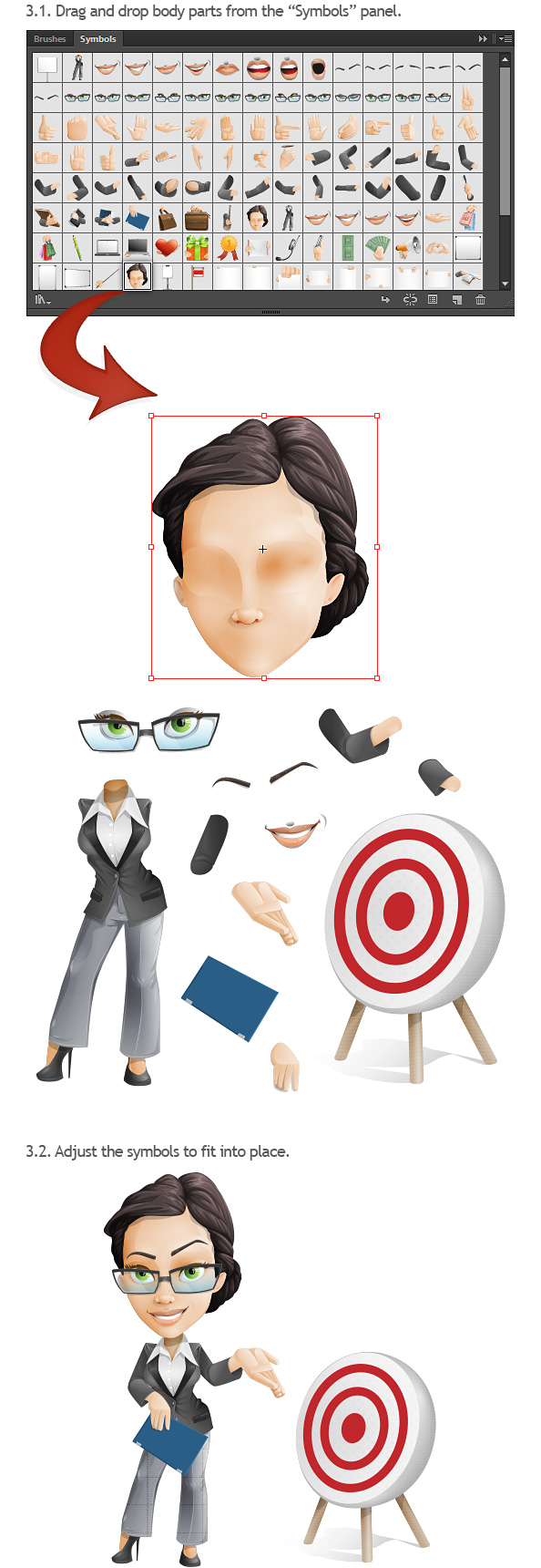 Drag and drop symbols to create a pose
